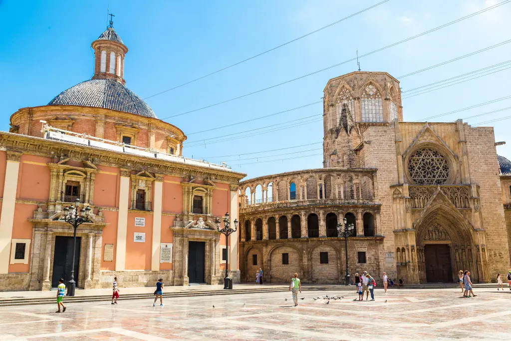 Gotička katedrala u kojoj se prema predanju čuva Sveti Gral, sa svojim zvonik tornjem pridodatim poznatim kao EL MIKALET, jednim od simbola grada, okrenuta je ka trgu sa svojim spektakularnim bočnim APOSTOLSKIM VRATIMA. Katedralu ćemo obići spolja upoznajući je i sa druge, čeone strane, gde se ona sa svojim, glavnim, baroknim ulazom otvara ka sledećem predivnom gradskom trgu – TRGU KRALJICE (PLAZA DE LA REINA). Oko vrlo živog trga niže se mnoštvo kafea i restorana, a uokviruje ga zeleno rastinje palmi koje pruža hlad na brojnim klupama ovog lepo uređenog prostora koji je poput dnevne sobe grada.